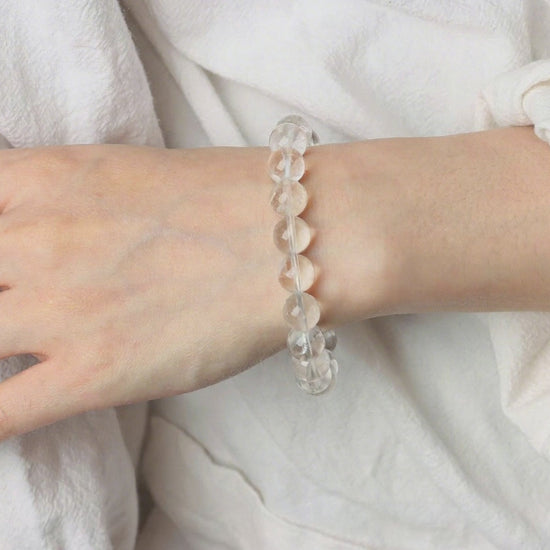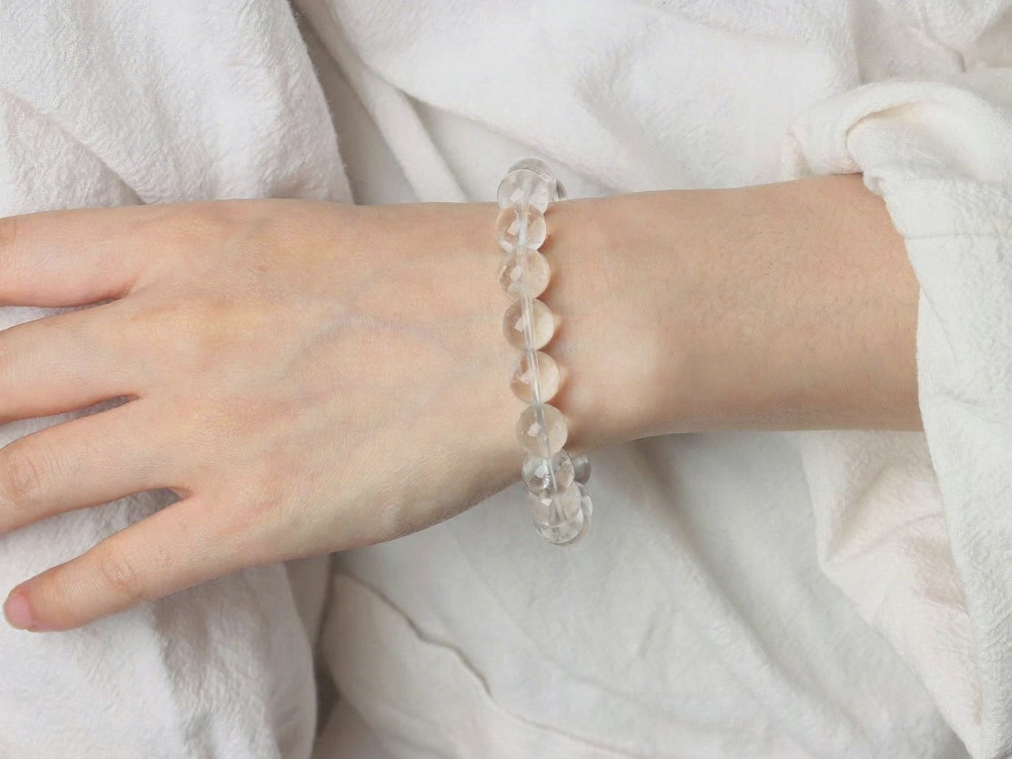 In the incessant din of the contemporary world, clarity is a luxury. One has to look up, up, up, to the highest mountains, where the air is thin and the light clear, to discover it.The proposal is the launching of the Summit of Himalayan Clear Quartz bracelet.These 10mm beads are made of real Himalayan Clear Quartz which has been harvested in the most sacred range on the earth. Millions of years passed by and this quartz would silently absorb the energy of high vibrations of the Himalayas. It is not merely a crystal, it is a prism of consciousness, which is meant to filter the stagnation out of your energy field.
